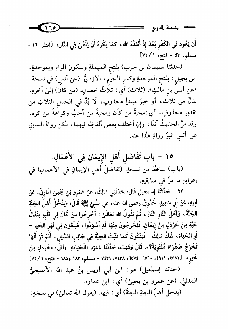 منحة الباري بشرح صحيح البخاري المسمى تحفة الباري