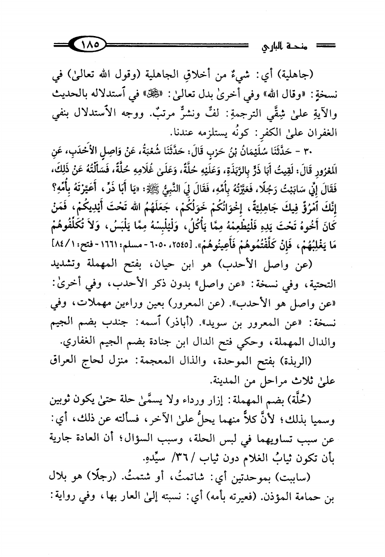 منحة الباري بشرح صحيح البخاري المسمى تحفة الباري