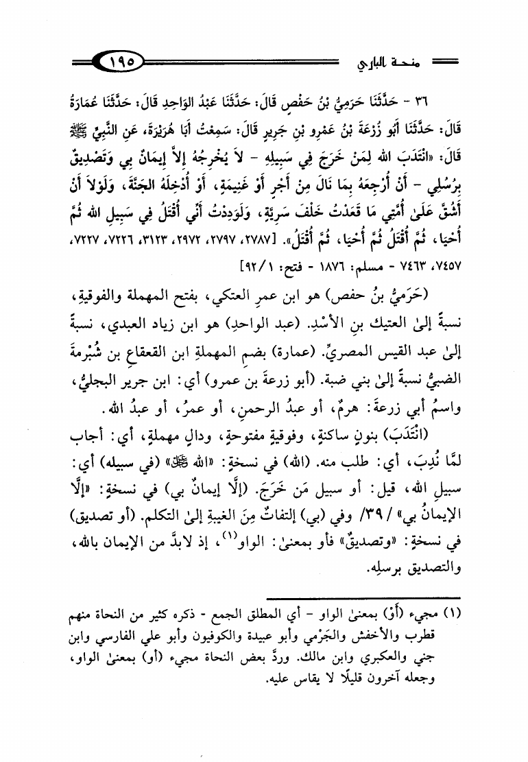 منحة الباري بشرح صحيح البخاري المسمى تحفة الباري