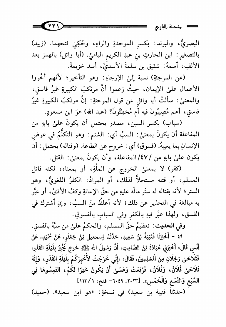 منحة الباري بشرح صحيح البخاري المسمى تحفة الباري
