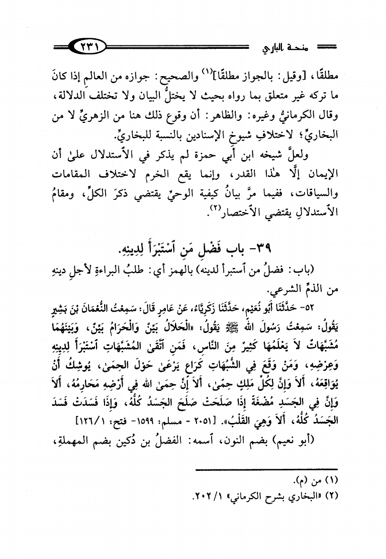 منحة الباري بشرح صحيح البخاري المسمى تحفة الباري