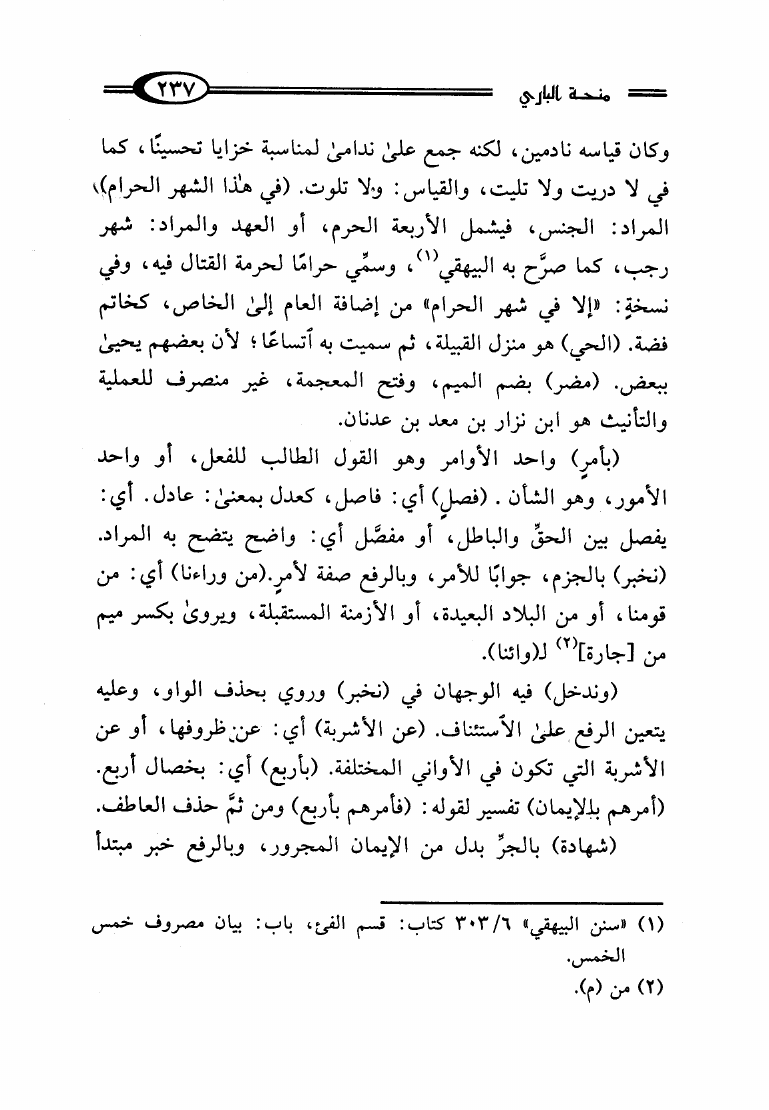 منحة الباري بشرح صحيح البخاري المسمى تحفة الباري