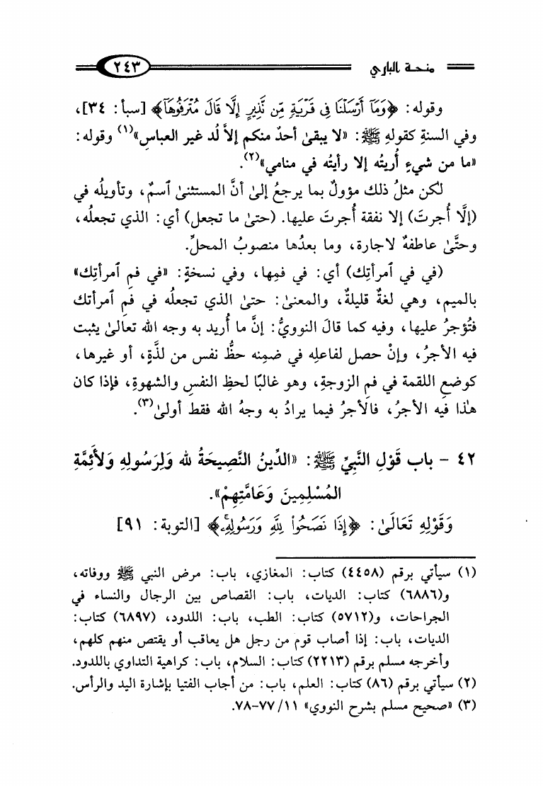 منحة الباري بشرح صحيح البخاري المسمى تحفة الباري