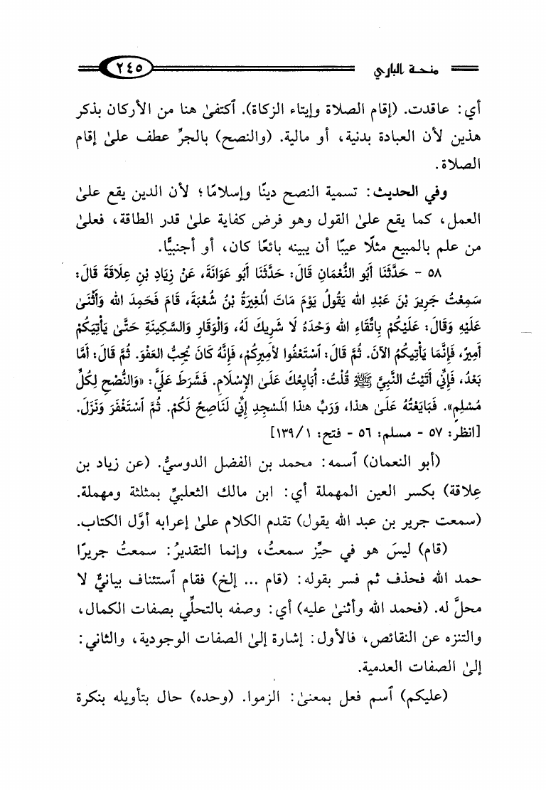 منحة الباري بشرح صحيح البخاري المسمى تحفة الباري