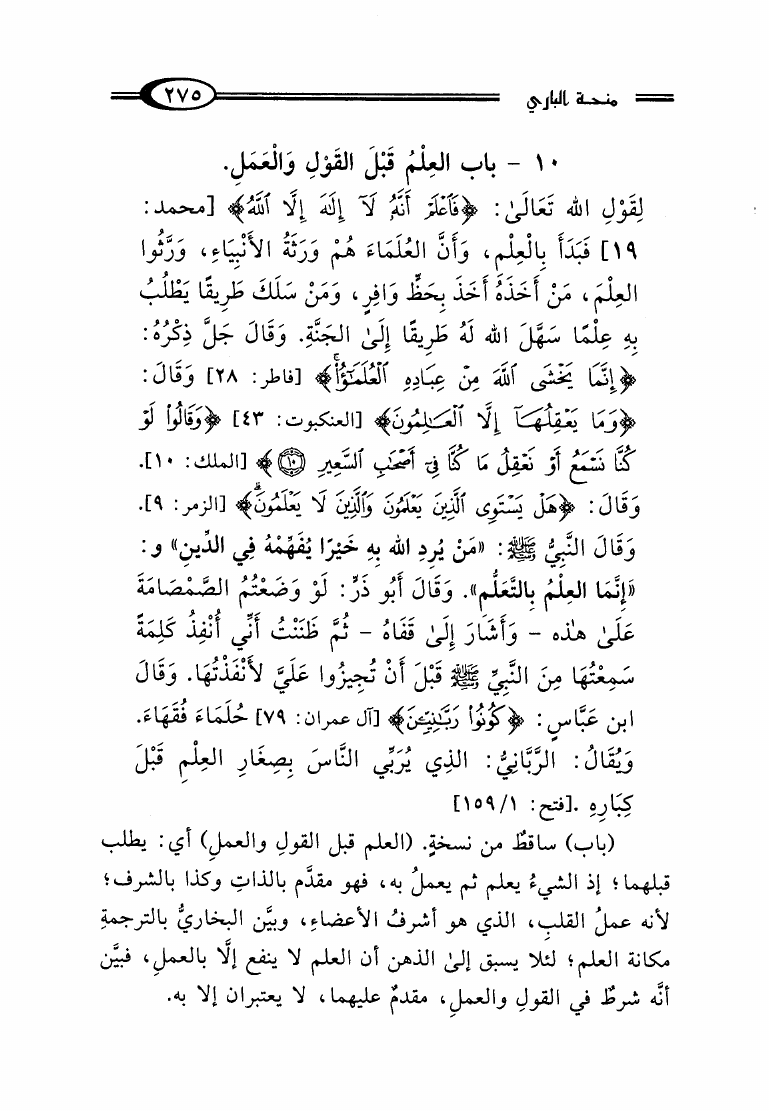 منحة الباري بشرح صحيح البخاري المسمى تحفة الباري