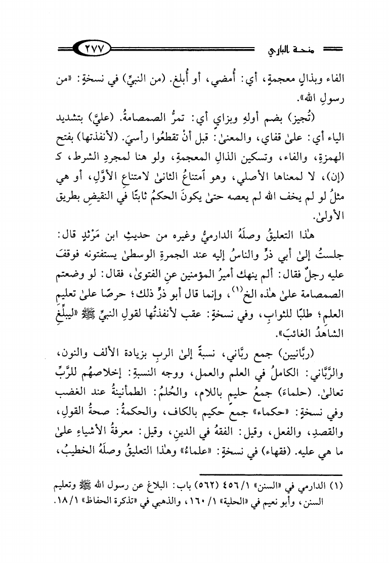 منحة الباري بشرح صحيح البخاري المسمى تحفة الباري