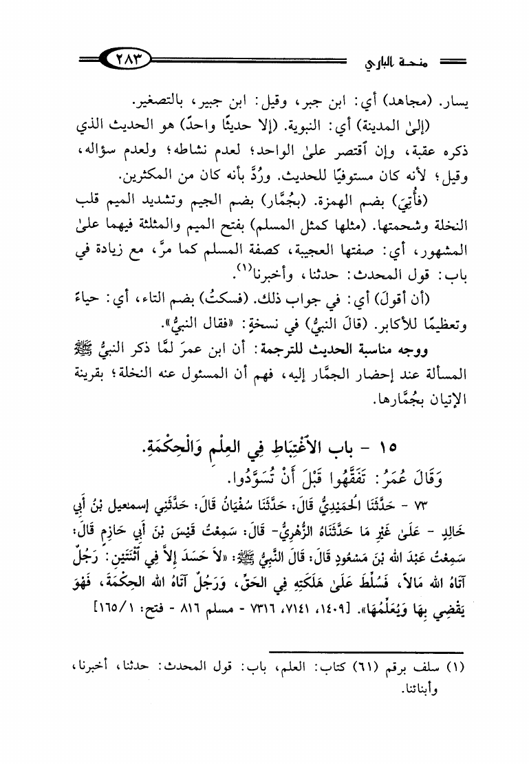 منحة الباري بشرح صحيح البخاري المسمى تحفة الباري