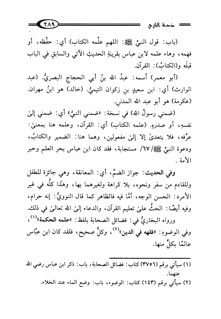 منحة الباري بشرح صحيح البخاري المسمى تحفة الباري