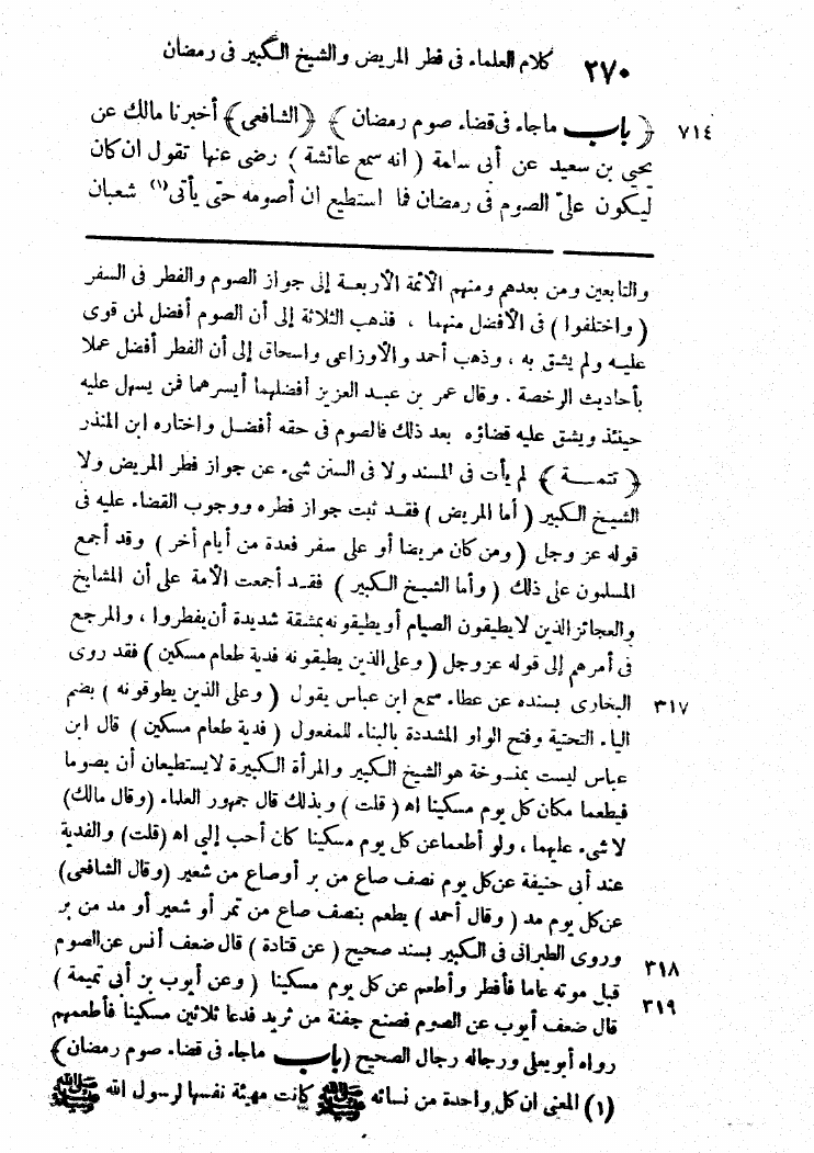 نام کتاب : بدائع المنن في جمع وترتيب مسند الشافعي والسنن، مذيلاً بالقول الحسن شرح بدائع المنن نویسنده : أحمد عبد الرحمن البنا الساعاتي جلد : 1 صفحه : 270