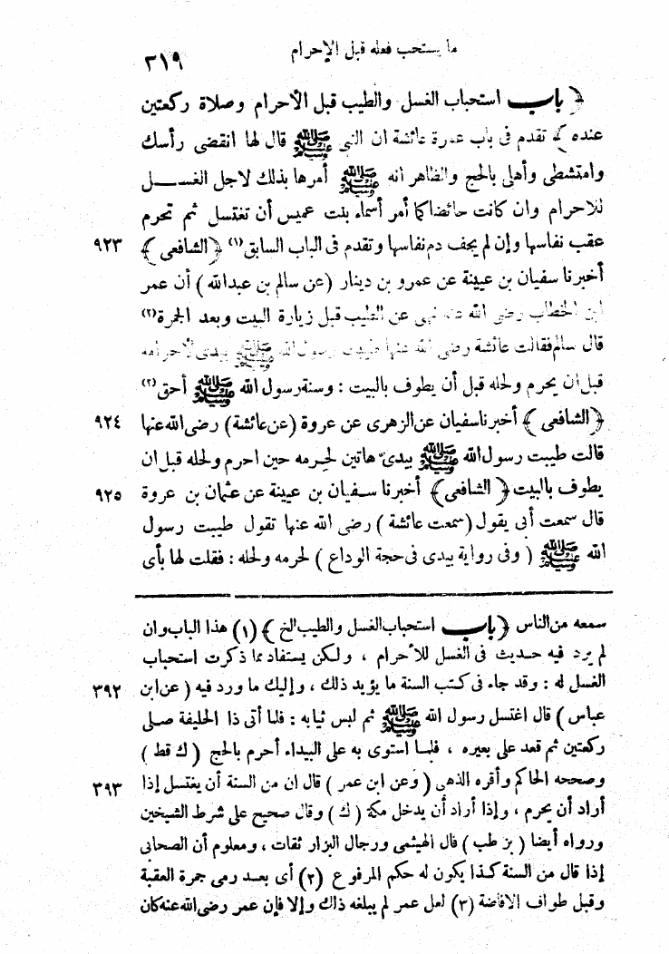 نام کتاب : بدائع المنن في جمع وترتيب مسند الشافعي والسنن، مذيلاً بالقول الحسن شرح بدائع المنن نویسنده : أحمد عبد الرحمن البنا الساعاتي جلد : 1 صفحه : 319