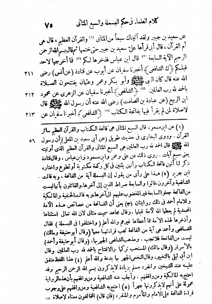 نام کتاب : بدائع المنن في جمع وترتيب مسند الشافعي والسنن، مذيلاً بالقول الحسن شرح بدائع المنن نویسنده : أحمد عبد الرحمن البنا الساعاتي جلد : 1 صفحه : 75