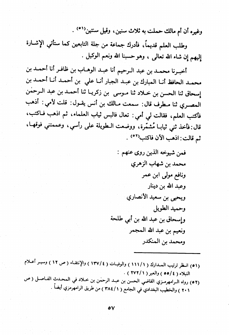 نام کتاب : تجريد التمهيد في الموطأ من المعاني والأسانيد (التقصي لأحاديث الموطأ وشيوخ الإمام مالك) وفي آخره: ما لم يذكر في الموطأ من رواية يحي بن يحي عن الإمام مالك نویسنده : يوسف بن عبد البر النمري القرطبي أبو عمر جلد : 1 صفحه : 57