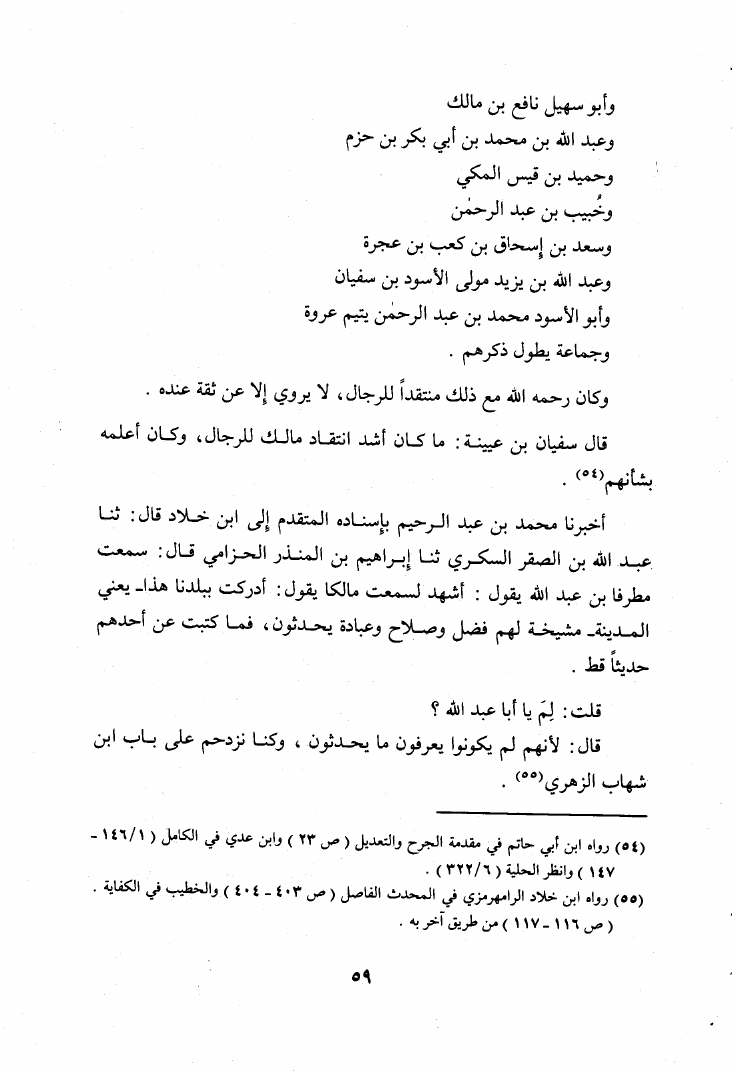 نام کتاب : تجريد التمهيد في الموطأ من المعاني والأسانيد (التقصي لأحاديث الموطأ وشيوخ الإمام مالك) وفي آخره: ما لم يذكر في الموطأ من رواية يحي بن يحي عن الإمام مالك نویسنده : يوسف بن عبد البر النمري القرطبي أبو عمر جلد : 1 صفحه : 59