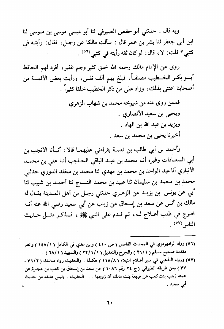 نام کتاب : تجريد التمهيد في الموطأ من المعاني والأسانيد (التقصي لأحاديث الموطأ وشيوخ الإمام مالك) وفي آخره: ما لم يذكر في الموطأ من رواية يحي بن يحي عن الإمام مالك نویسنده : يوسف بن عبد البر النمري القرطبي أبو عمر جلد : 1 صفحه : 60