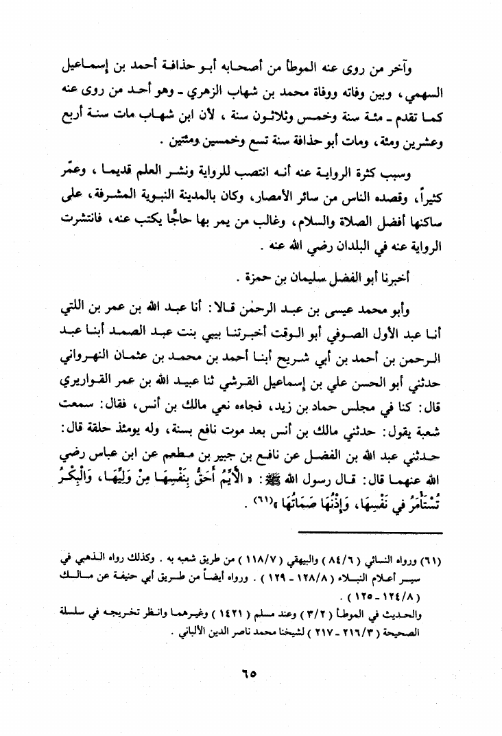 نام کتاب : تجريد التمهيد في الموطأ من المعاني والأسانيد (التقصي لأحاديث الموطأ وشيوخ الإمام مالك) وفي آخره: ما لم يذكر في الموطأ من رواية يحي بن يحي عن الإمام مالك نویسنده : يوسف بن عبد البر النمري القرطبي أبو عمر جلد : 1 صفحه : 65