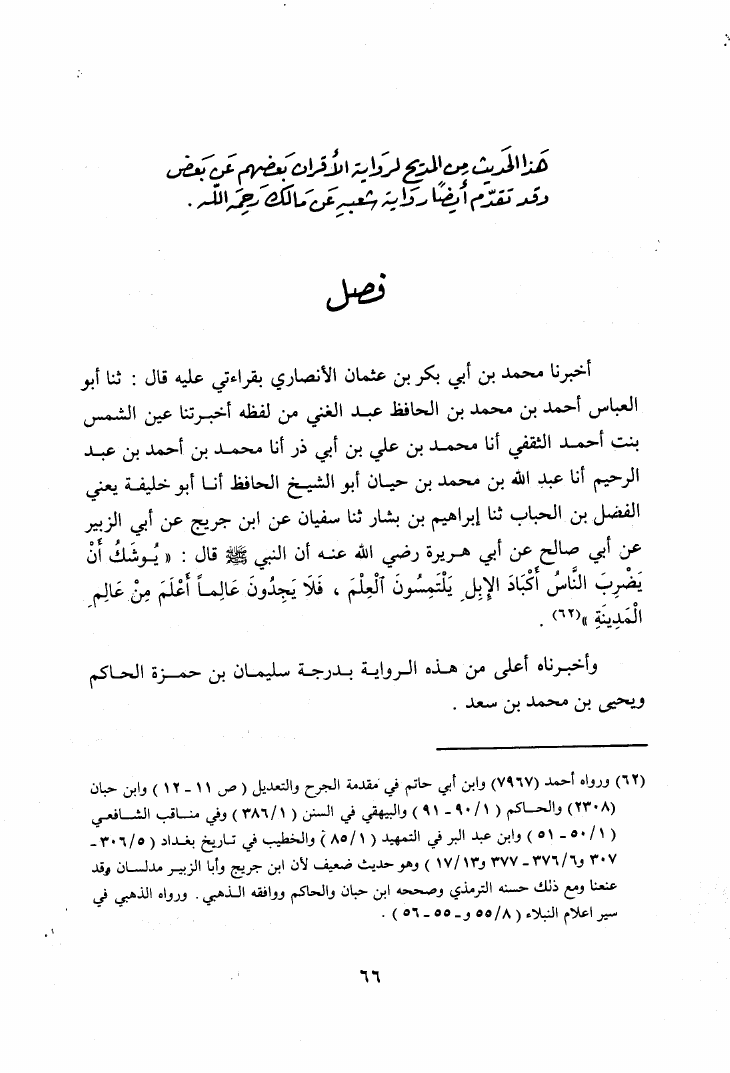 نام کتاب : تجريد التمهيد في الموطأ من المعاني والأسانيد (التقصي لأحاديث الموطأ وشيوخ الإمام مالك) وفي آخره: ما لم يذكر في الموطأ من رواية يحي بن يحي عن الإمام مالك نویسنده : يوسف بن عبد البر النمري القرطبي أبو عمر جلد : 1 صفحه : 66