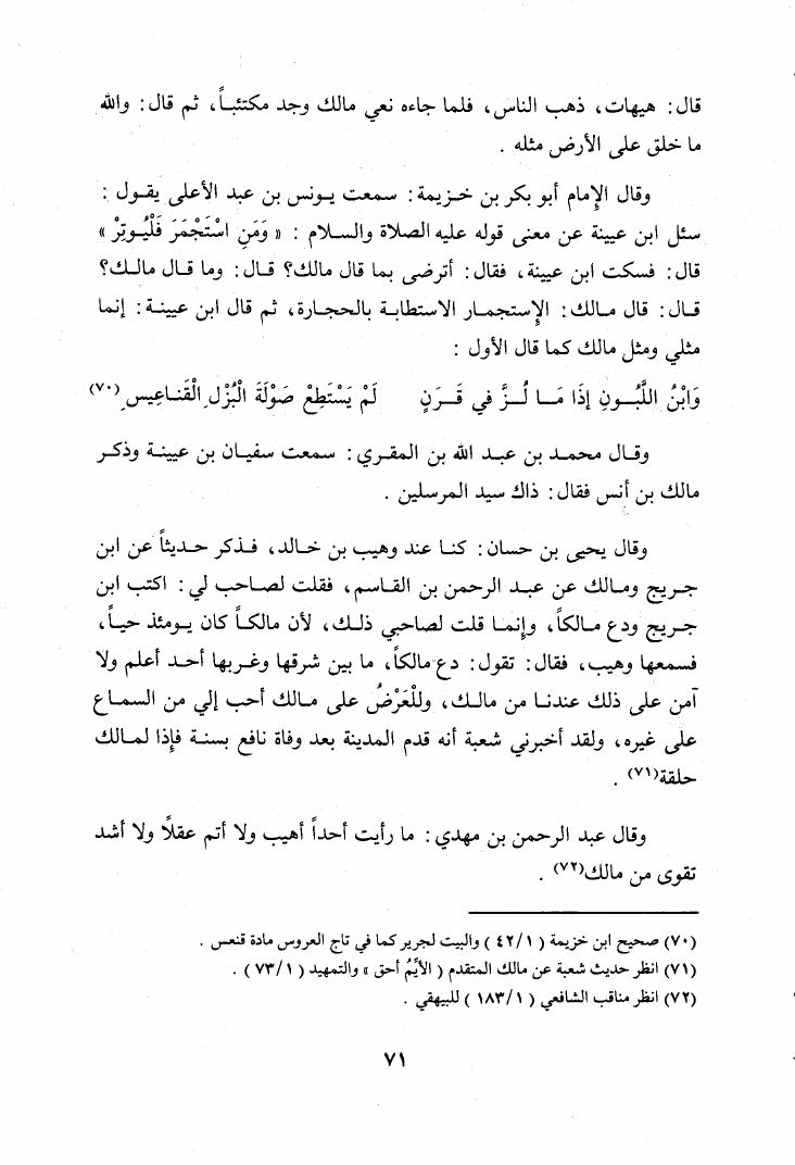 نام کتاب : تجريد التمهيد في الموطأ من المعاني والأسانيد (التقصي لأحاديث الموطأ وشيوخ الإمام مالك) وفي آخره: ما لم يذكر في الموطأ من رواية يحي بن يحي عن الإمام مالك نویسنده : يوسف بن عبد البر النمري القرطبي أبو عمر جلد : 1 صفحه : 71
