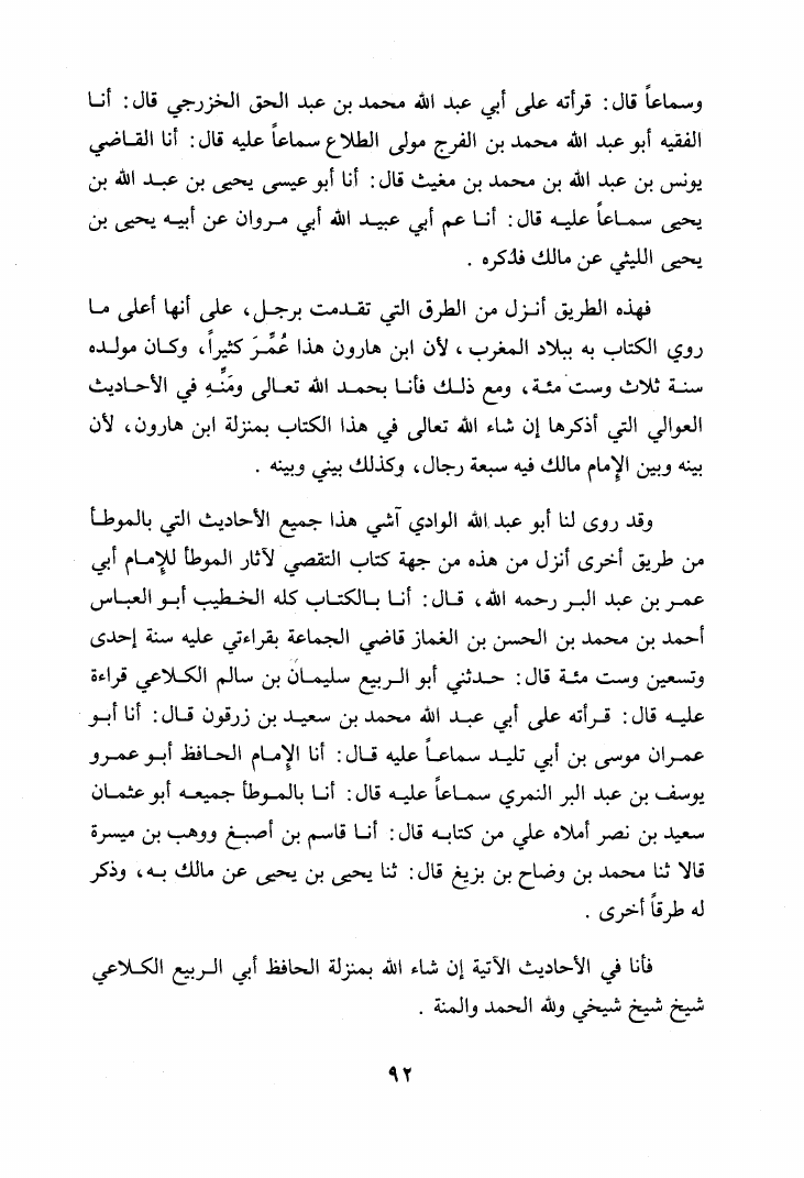 نام کتاب : تجريد التمهيد في الموطأ من المعاني والأسانيد (التقصي لأحاديث الموطأ وشيوخ الإمام مالك) وفي آخره: ما لم يذكر في الموطأ من رواية يحي بن يحي عن الإمام مالك نویسنده : يوسف بن عبد البر النمري القرطبي أبو عمر جلد : 1 صفحه : 92
