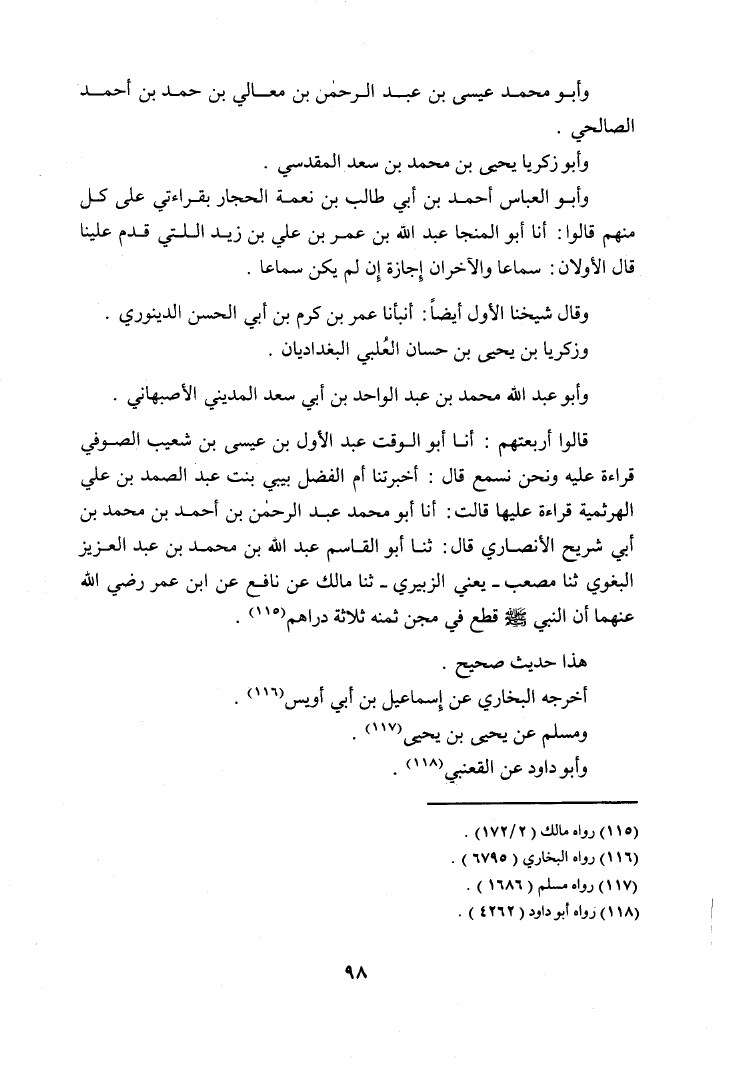 نام کتاب : تجريد التمهيد في الموطأ من المعاني والأسانيد (التقصي لأحاديث الموطأ وشيوخ الإمام مالك) وفي آخره: ما لم يذكر في الموطأ من رواية يحي بن يحي عن الإمام مالك نویسنده : يوسف بن عبد البر النمري القرطبي أبو عمر جلد : 1 صفحه : 98