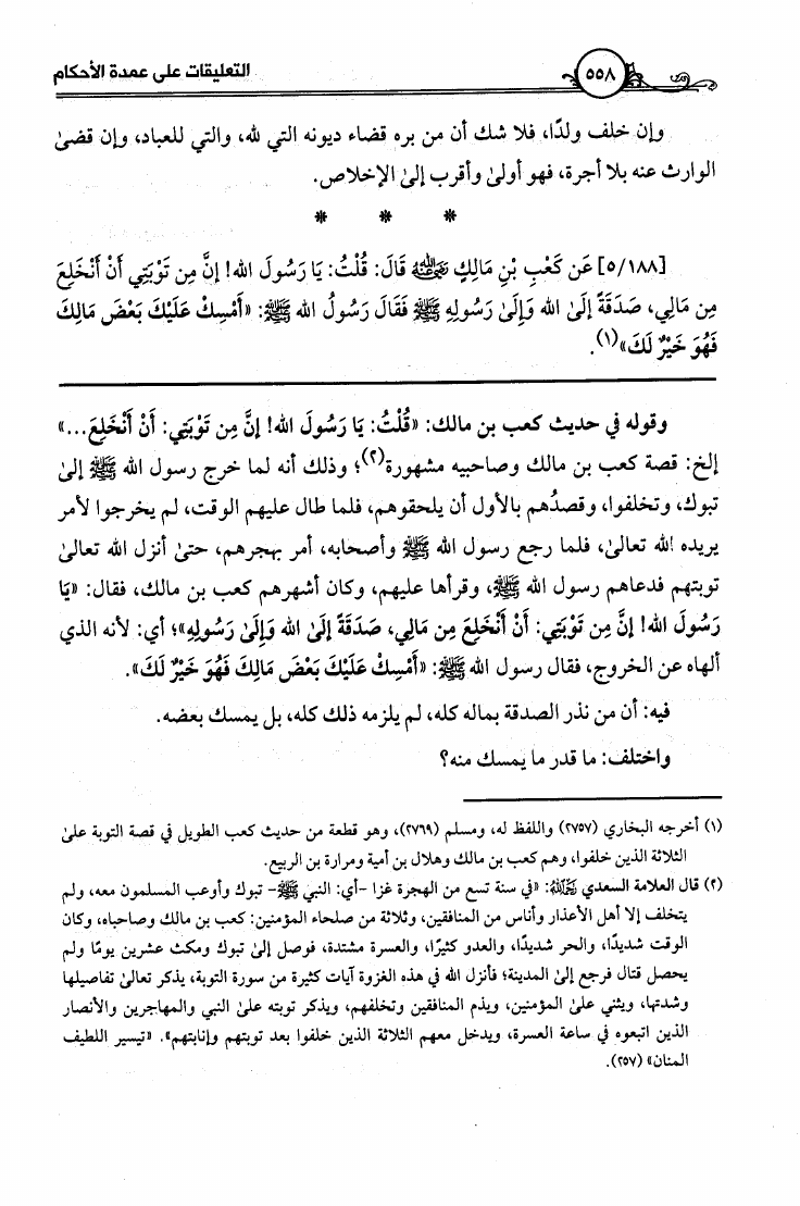 التعليقات على عمدة الأحكام (ط. العلوم والحكم والآثار)