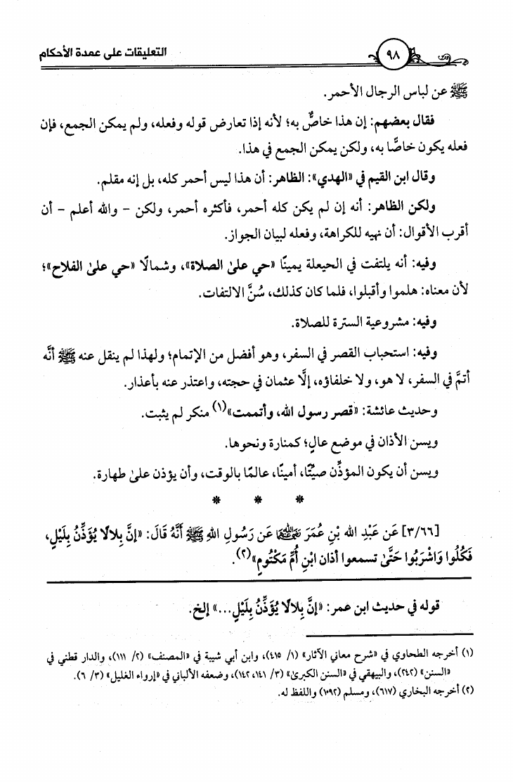 التعليقات على عمدة الأحكام (ط. العلوم والحكم والآثار)