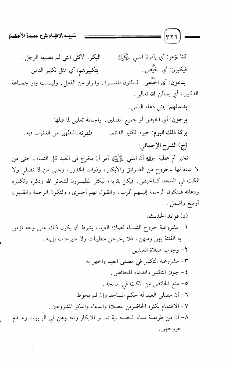 تنبيه الأفهام شرح عمدة الأحكام