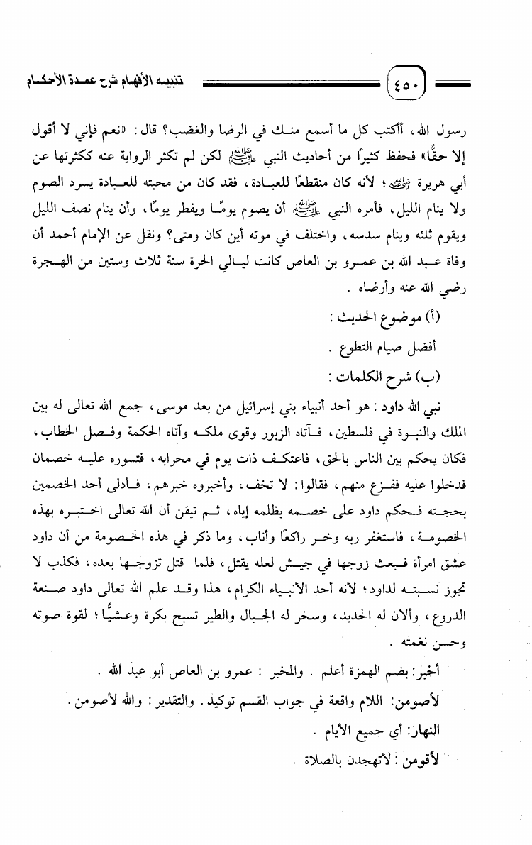 تنبيه الأفهام شرح عمدة الأحكام