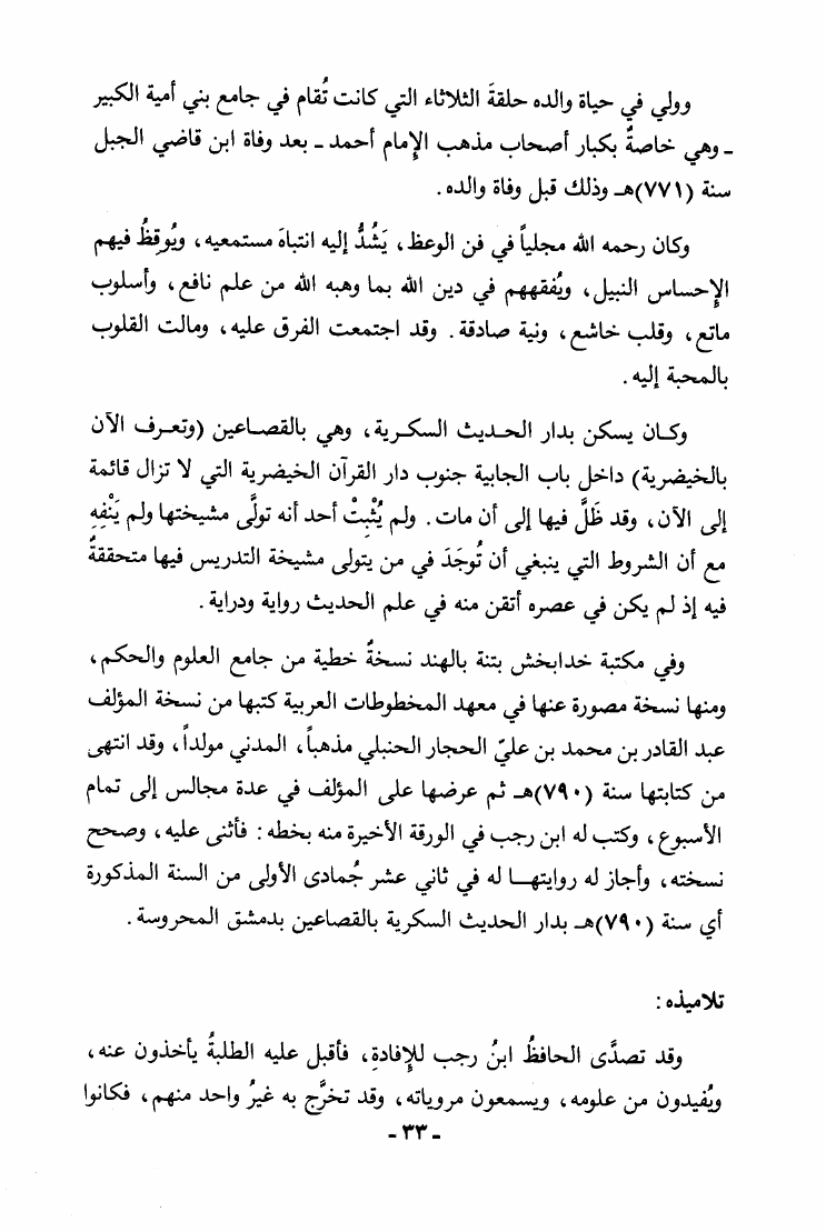 عبد الرحمن بن شهاب الدين زين الدين أبو الفرج ابن رجب الحنبلي
