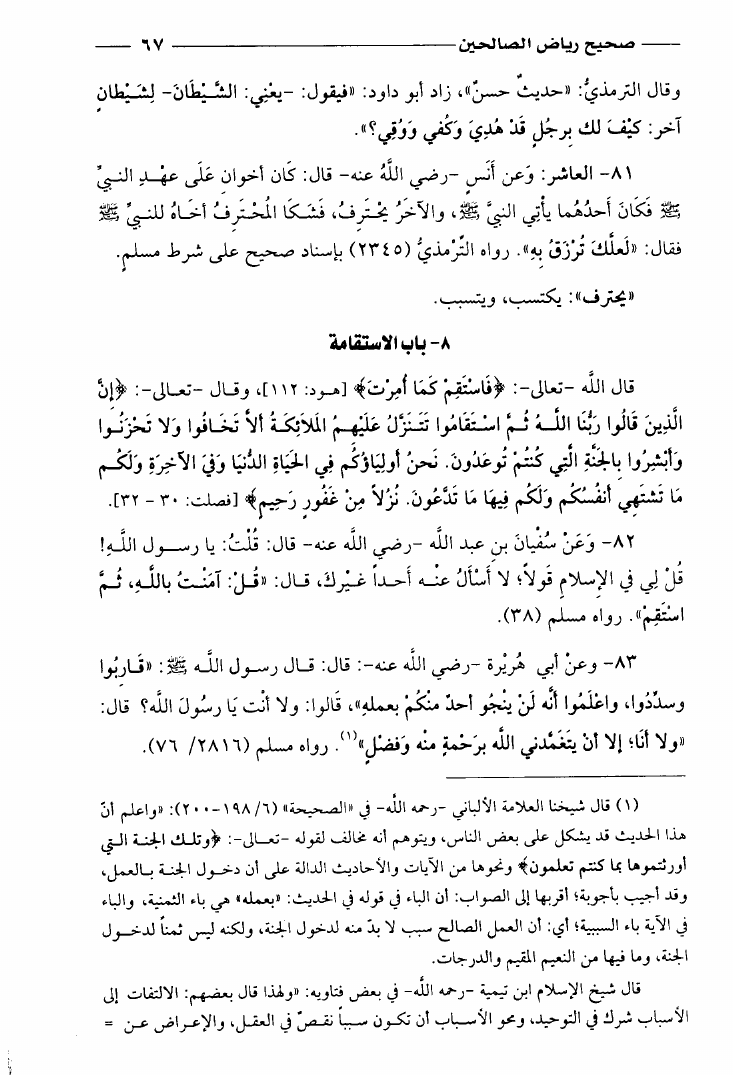 صحيح رياض الصالحين وبذيله حواشي نفيسة وتعليقات منيفة للألباني (الهلالي)