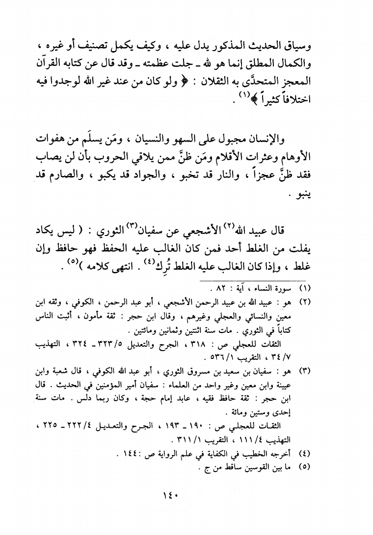 نام کتاب : عجالة الإملاء المتيسرة من التذنيب على ما وقع للحافظ المنذري من الوهم وغيره في كتابه الترغيب والترهيب (ط المعارف) نویسنده : الناجي جلد : 1 صفحه : 140