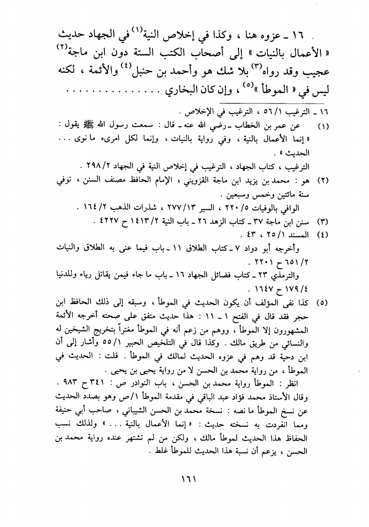 نام کتاب : عجالة الإملاء المتيسرة من التذنيب على ما وقع للحافظ المنذري من الوهم وغيره في كتابه الترغيب والترهيب (ط المعارف) نویسنده : الناجي جلد : 1 صفحه : 161