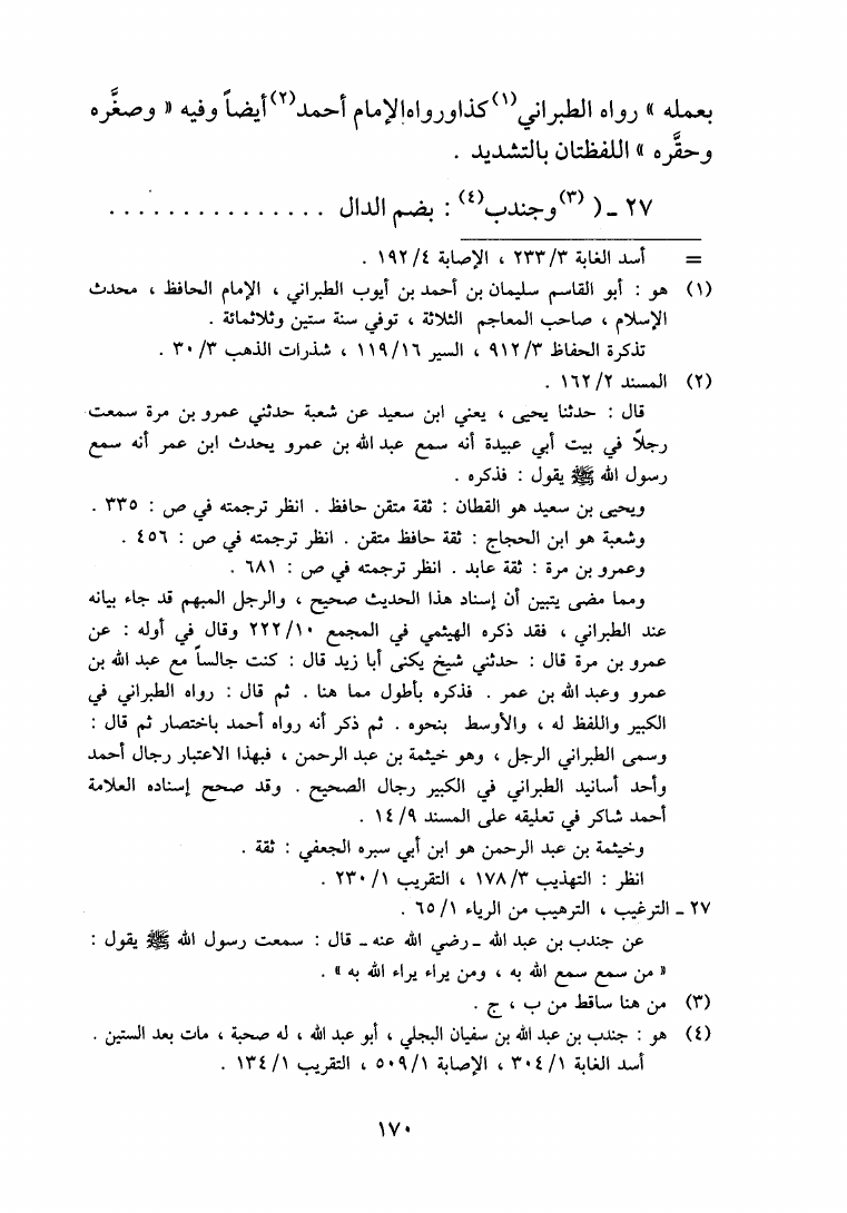 نام کتاب : عجالة الإملاء المتيسرة من التذنيب على ما وقع للحافظ المنذري من الوهم وغيره في كتابه الترغيب والترهيب (ط المعارف) نویسنده : الناجي جلد : 1 صفحه : 170