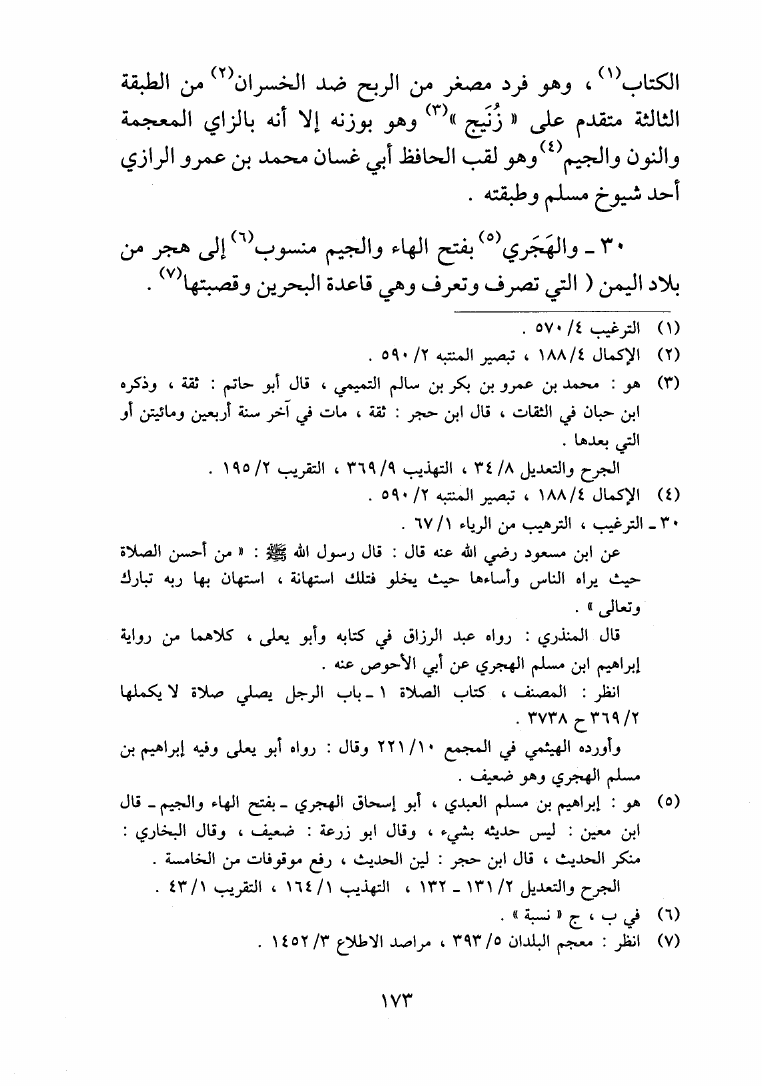 نام کتاب : عجالة الإملاء المتيسرة من التذنيب على ما وقع للحافظ المنذري من الوهم وغيره في كتابه الترغيب والترهيب (ط المعارف) نویسنده : الناجي جلد : 1 صفحه : 173