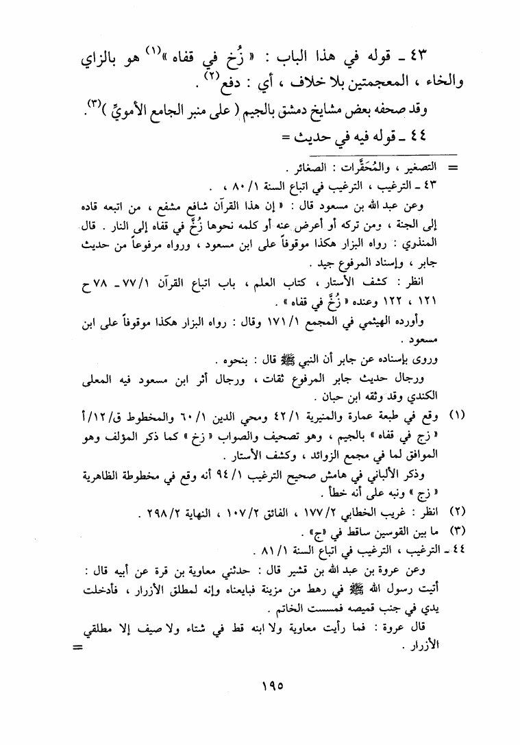 نام کتاب : عجالة الإملاء المتيسرة من التذنيب على ما وقع للحافظ المنذري من الوهم وغيره في كتابه الترغيب والترهيب (ط المعارف) نویسنده : الناجي جلد : 1 صفحه : 195
