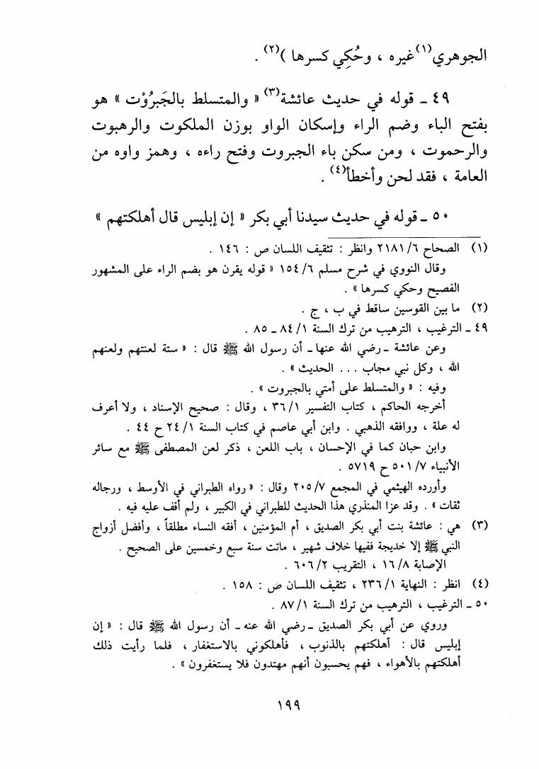 نام کتاب : عجالة الإملاء المتيسرة من التذنيب على ما وقع للحافظ المنذري من الوهم وغيره في كتابه الترغيب والترهيب (ط المعارف) نویسنده : الناجي جلد : 1 صفحه : 199