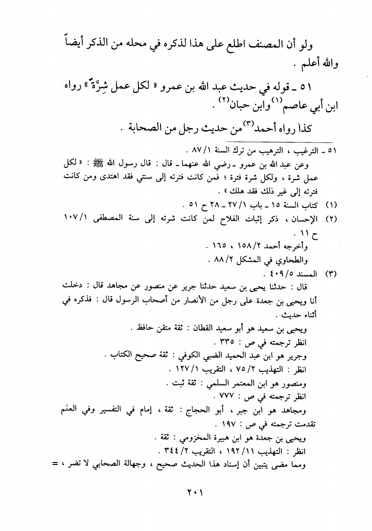 نام کتاب : عجالة الإملاء المتيسرة من التذنيب على ما وقع للحافظ المنذري من الوهم وغيره في كتابه الترغيب والترهيب (ط المعارف) نویسنده : الناجي جلد : 1 صفحه : 201