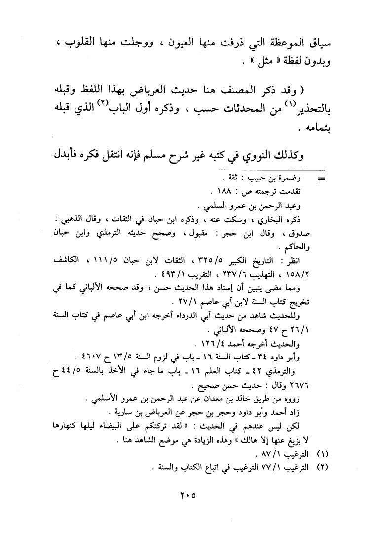 نام کتاب : عجالة الإملاء المتيسرة من التذنيب على ما وقع للحافظ المنذري من الوهم وغيره في كتابه الترغيب والترهيب (ط المعارف) نویسنده : الناجي جلد : 1 صفحه : 205