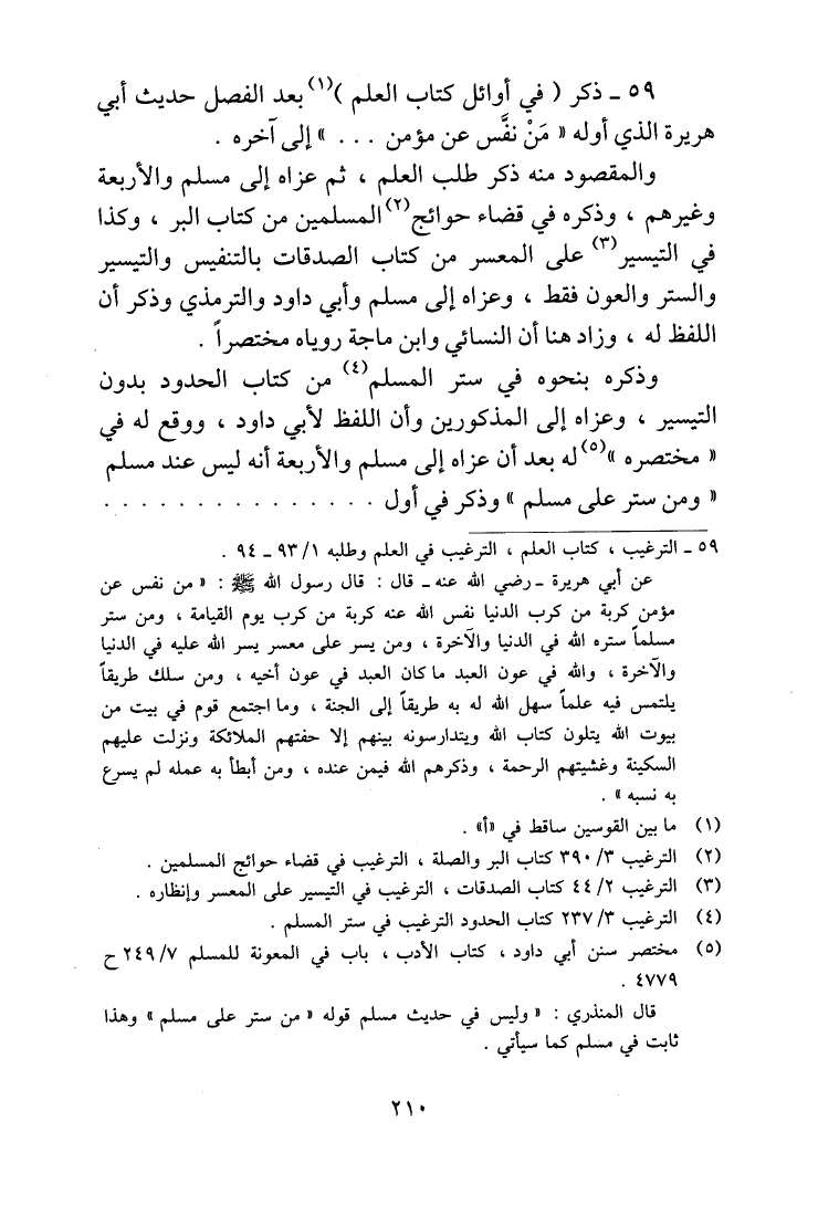 نام کتاب : عجالة الإملاء المتيسرة من التذنيب على ما وقع للحافظ المنذري من الوهم وغيره في كتابه الترغيب والترهيب (ط المعارف) نویسنده : الناجي جلد : 1 صفحه : 210