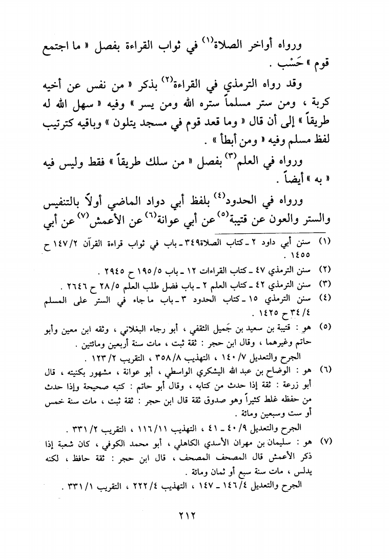 نام کتاب : عجالة الإملاء المتيسرة من التذنيب على ما وقع للحافظ المنذري من الوهم وغيره في كتابه الترغيب والترهيب (ط المعارف) نویسنده : الناجي جلد : 1 صفحه : 212