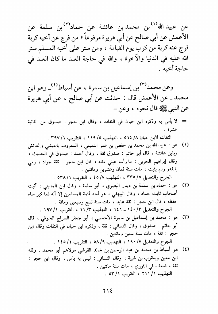 نام کتاب : عجالة الإملاء المتيسرة من التذنيب على ما وقع للحافظ المنذري من الوهم وغيره في كتابه الترغيب والترهيب (ط المعارف) نویسنده : الناجي جلد : 1 صفحه : 214