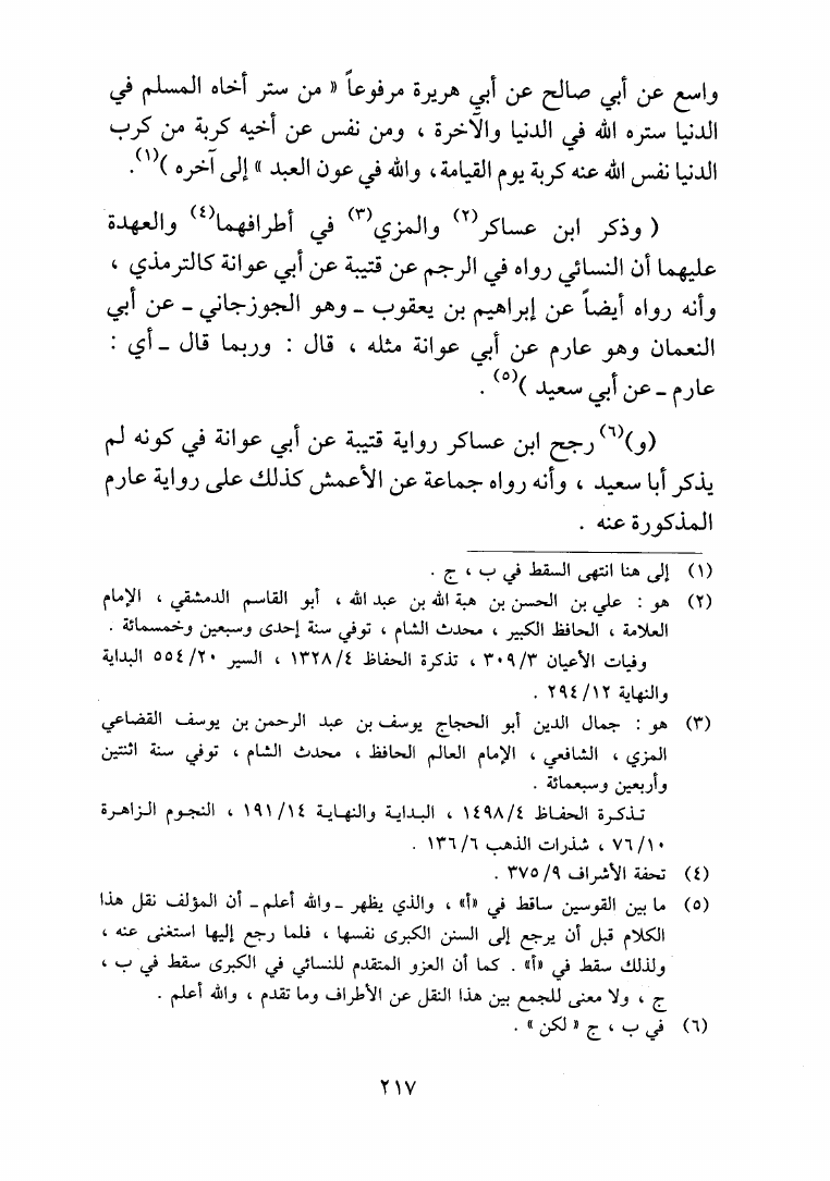 نام کتاب : عجالة الإملاء المتيسرة من التذنيب على ما وقع للحافظ المنذري من الوهم وغيره في كتابه الترغيب والترهيب (ط المعارف) نویسنده : الناجي جلد : 1 صفحه : 217