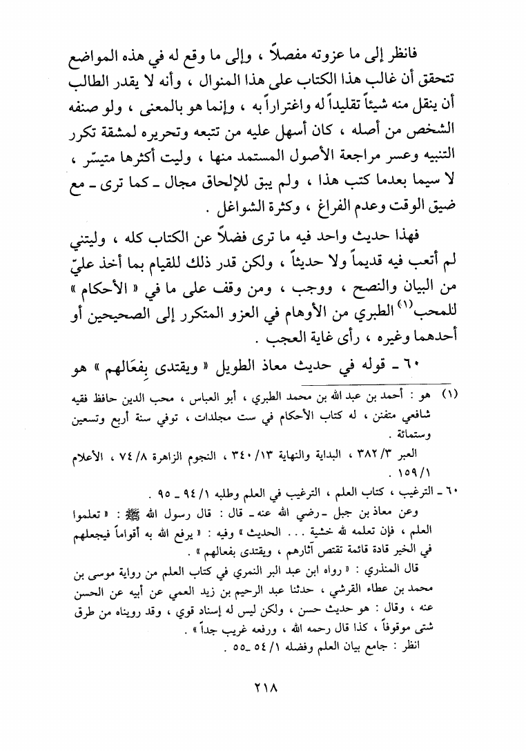 نام کتاب : عجالة الإملاء المتيسرة من التذنيب على ما وقع للحافظ المنذري من الوهم وغيره في كتابه الترغيب والترهيب (ط المعارف) نویسنده : الناجي جلد : 1 صفحه : 218