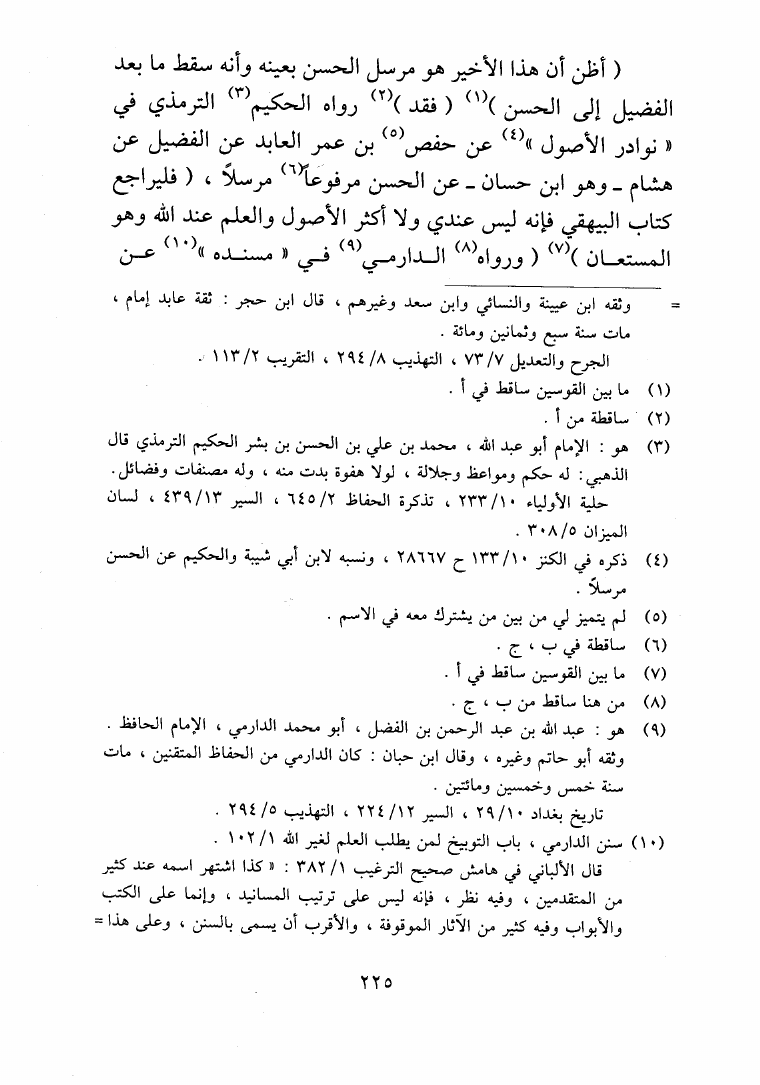 نام کتاب : عجالة الإملاء المتيسرة من التذنيب على ما وقع للحافظ المنذري من الوهم وغيره في كتابه الترغيب والترهيب (ط المعارف) نویسنده : الناجي جلد : 1 صفحه : 225
