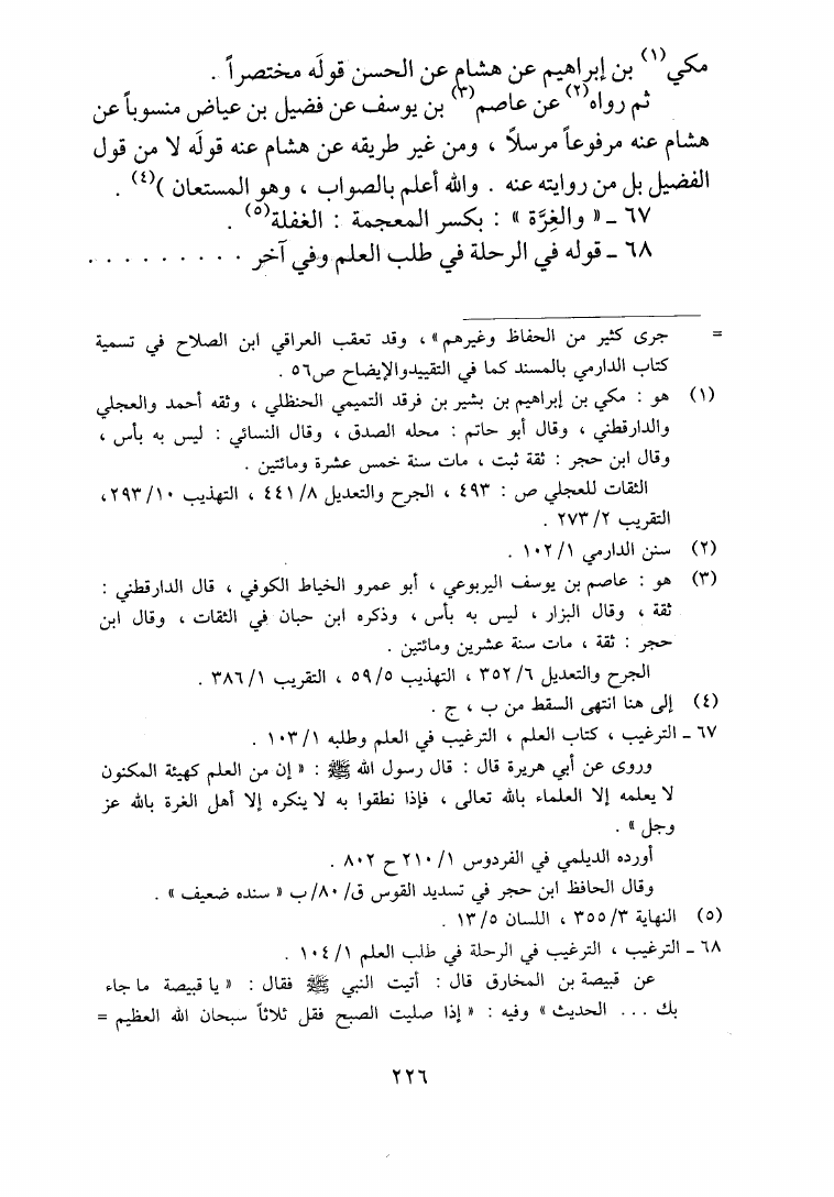 نام کتاب : عجالة الإملاء المتيسرة من التذنيب على ما وقع للحافظ المنذري من الوهم وغيره في كتابه الترغيب والترهيب (ط المعارف) نویسنده : الناجي جلد : 1 صفحه : 226