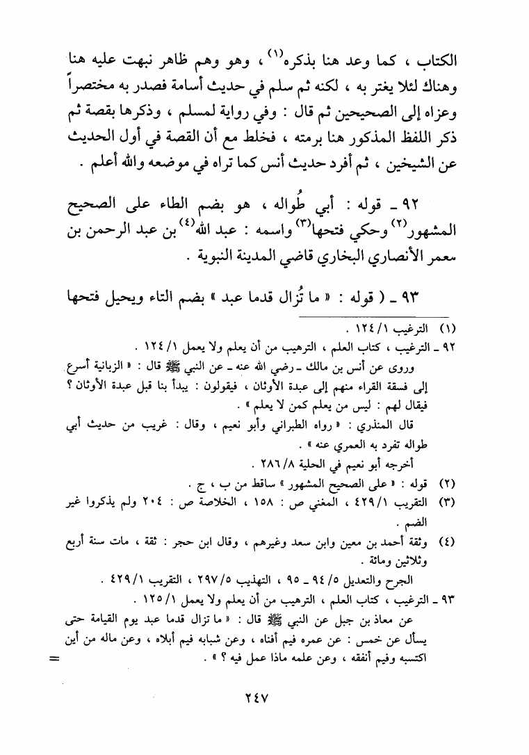 نام کتاب : عجالة الإملاء المتيسرة من التذنيب على ما وقع للحافظ المنذري من الوهم وغيره في كتابه الترغيب والترهيب (ط المعارف) نویسنده : الناجي جلد : 1 صفحه : 247
