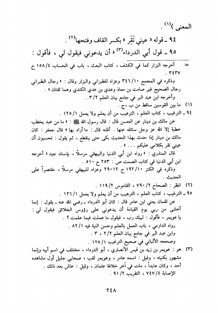 نام کتاب : عجالة الإملاء المتيسرة من التذنيب على ما وقع للحافظ المنذري من الوهم وغيره في كتابه الترغيب والترهيب (ط المعارف) نویسنده : الناجي جلد : 1 صفحه : 248