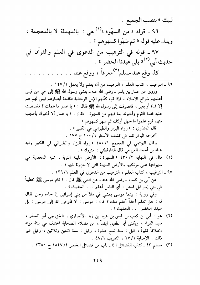 نام کتاب : عجالة الإملاء المتيسرة من التذنيب على ما وقع للحافظ المنذري من الوهم وغيره في كتابه الترغيب والترهيب (ط المعارف) نویسنده : الناجي جلد : 1 صفحه : 249