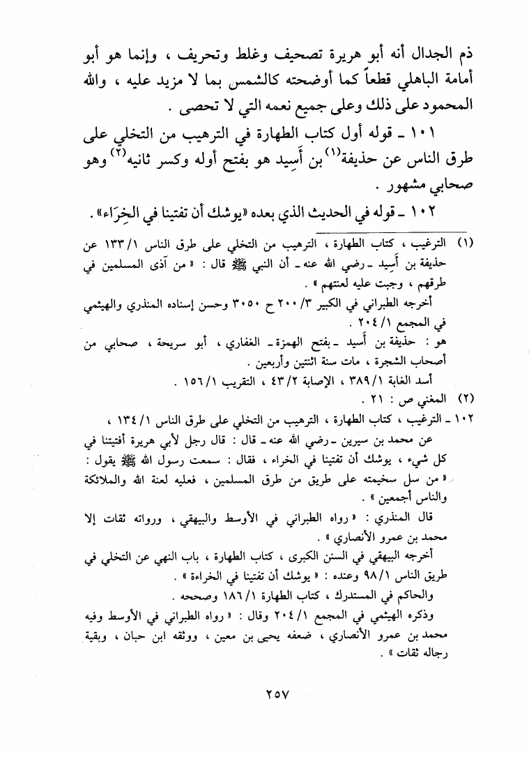 نام کتاب : عجالة الإملاء المتيسرة من التذنيب على ما وقع للحافظ المنذري من الوهم وغيره في كتابه الترغيب والترهيب (ط المعارف) نویسنده : الناجي جلد : 1 صفحه : 257