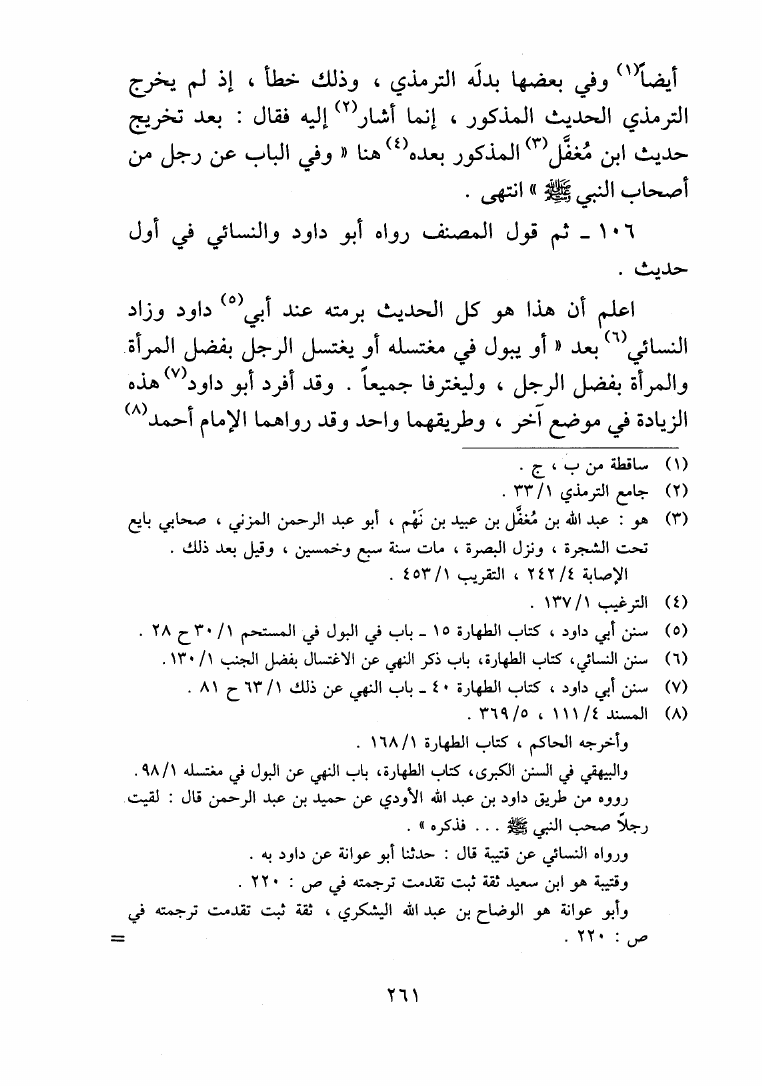 نام کتاب : عجالة الإملاء المتيسرة من التذنيب على ما وقع للحافظ المنذري من الوهم وغيره في كتابه الترغيب والترهيب (ط المعارف) نویسنده : الناجي جلد : 1 صفحه : 261