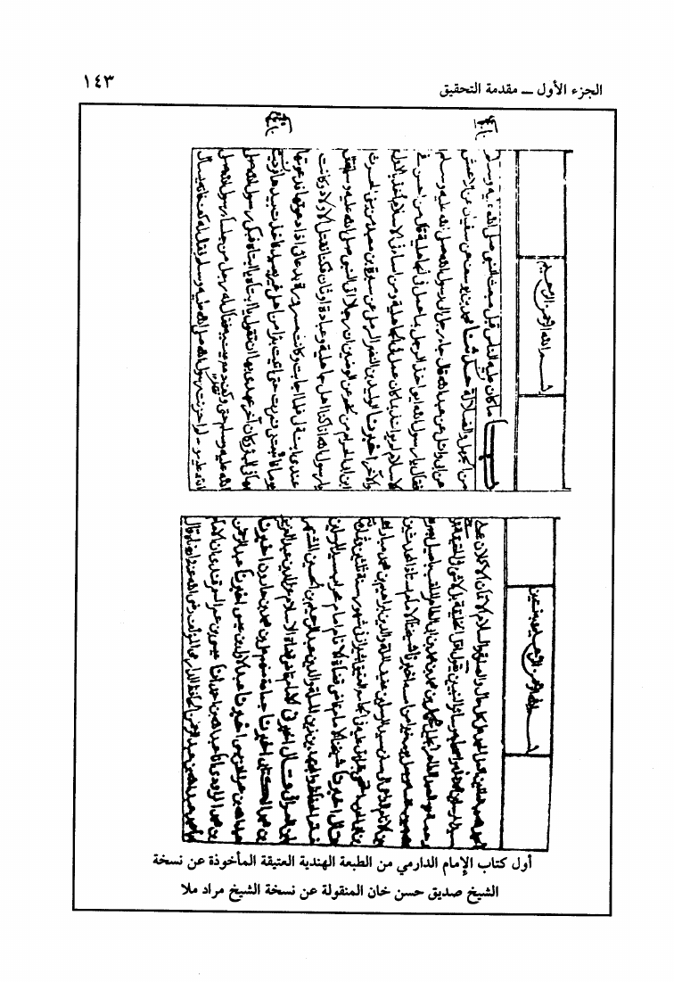 نام کتاب : فتح المنان شرح وتحقيق كتاب الدارمي أبي محمد عبد الله بن عبد الرحمن، المسمى بـ : المسند الجامع نویسنده : نبيل بن هاشم بن عبد الله الغمري آل باعلوي جلد : 1 صفحه : 143
